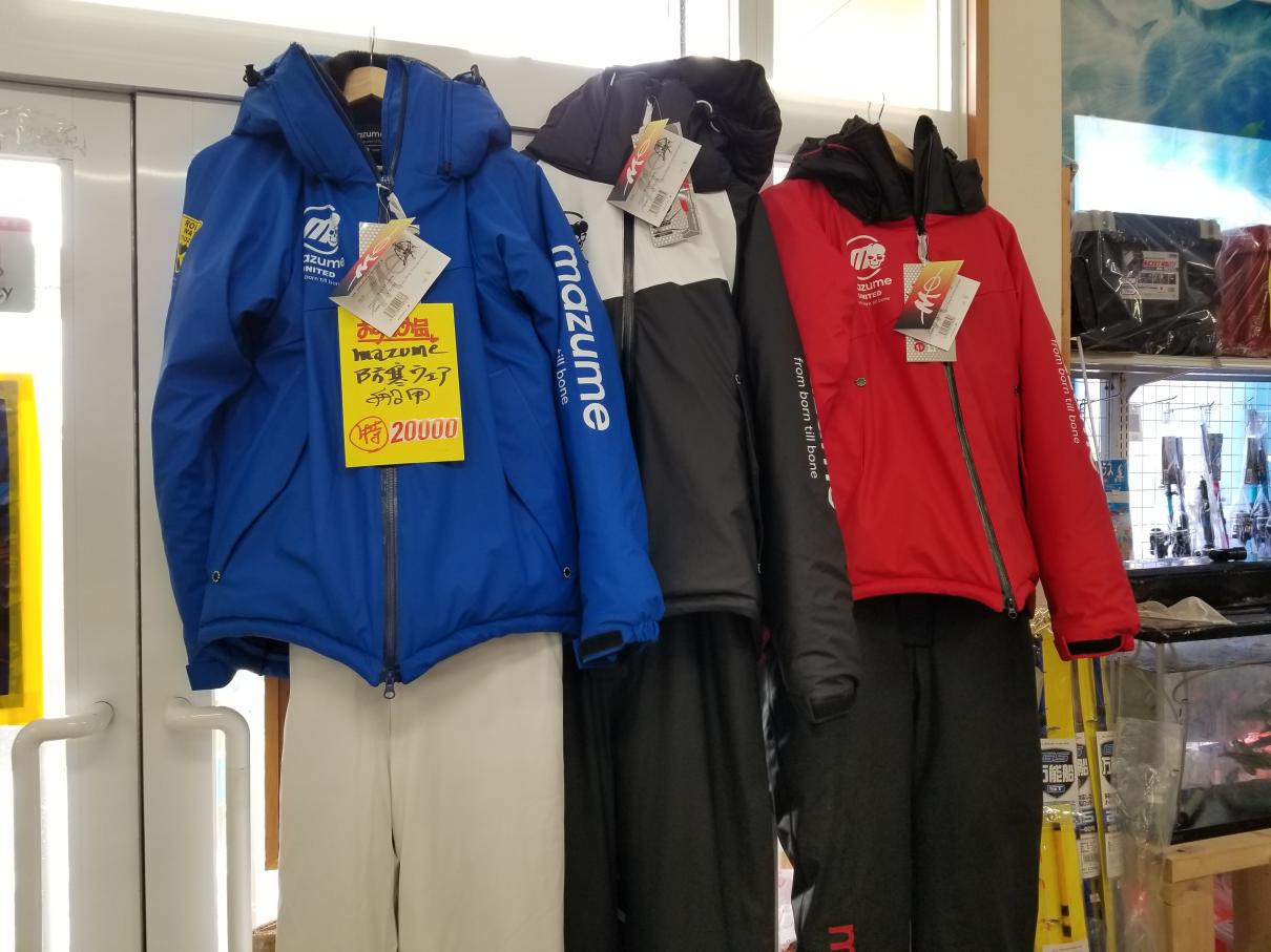 冬の必需品、MAZUME船用防寒ウエアM~LL 特価20000円
